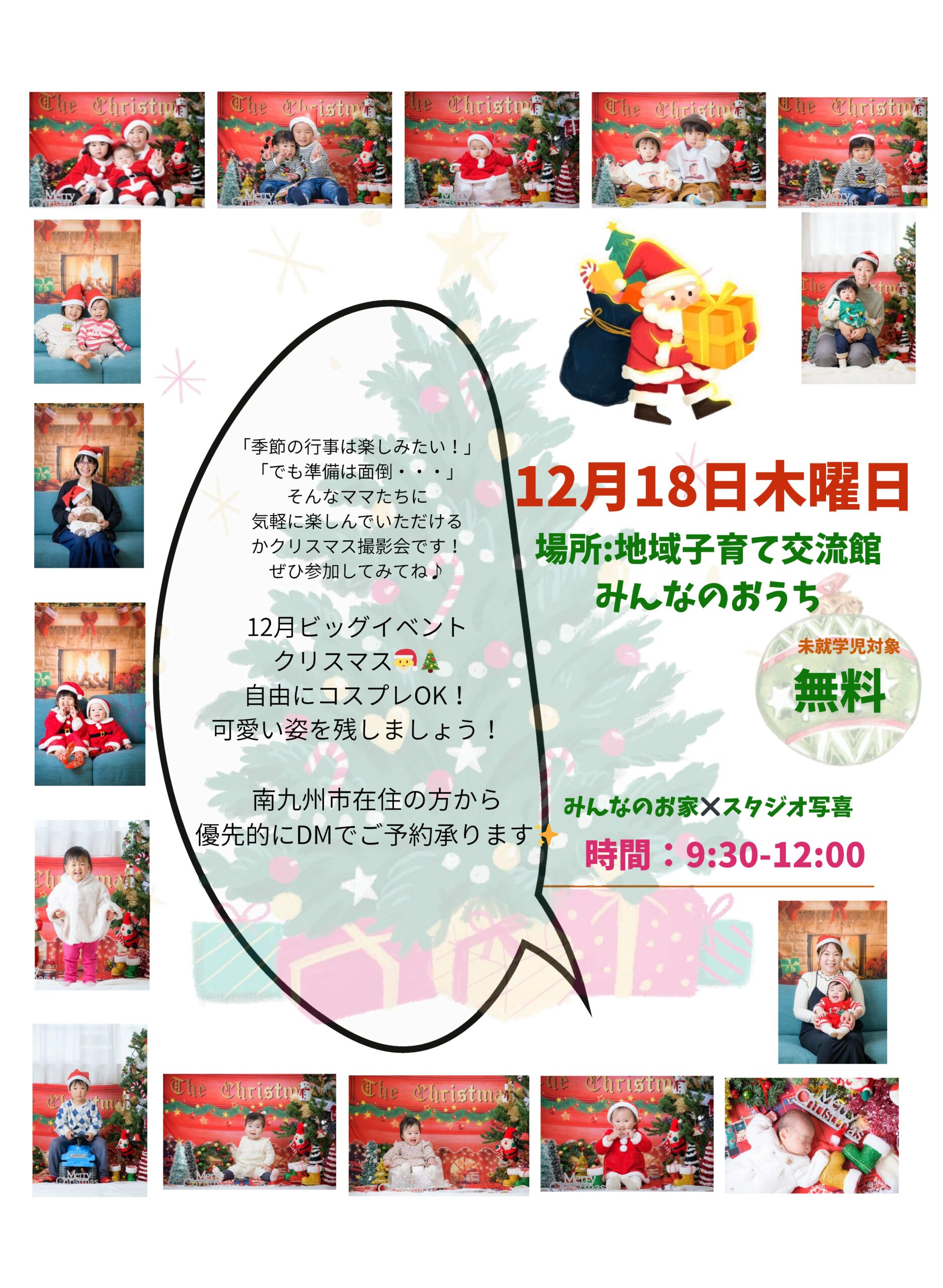 地域子育て交流館「みんなのお家」で,クリスマス撮影会を開催します。